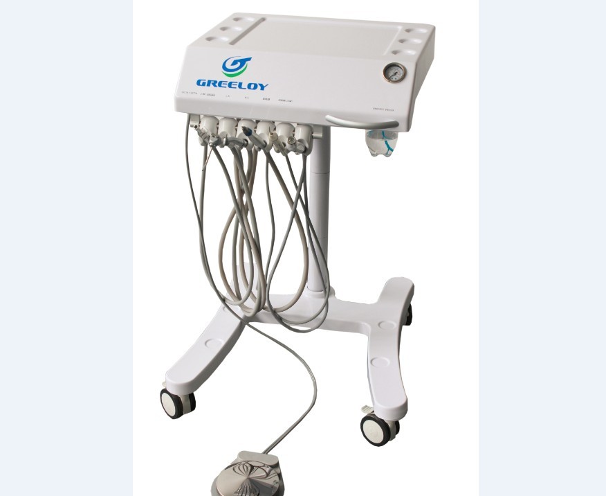 Mobile Dental Unit GU-P 302, it’s main applications are for oral heath and treatment. It is a indoor operation unit, mobile design, novel appearance, and easy operation. Professional medical casters with brake, very silent to move, reveal the high-end quality. Light weight, freely to remove. Can with a external air supply system, or here is a portable dental air compressor as option.
